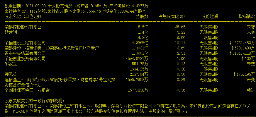 截至2021年9月30日,其总股东人数为8.656万,截至2021年年末,南方中证500ETF、富国中证红利指数(4013.569,19.40,0.49%)(0.0000,0.00,0.00%)增强A、大成中证红利指数A、易方达中证红利ETF等50只基金持仓荣盛发展。