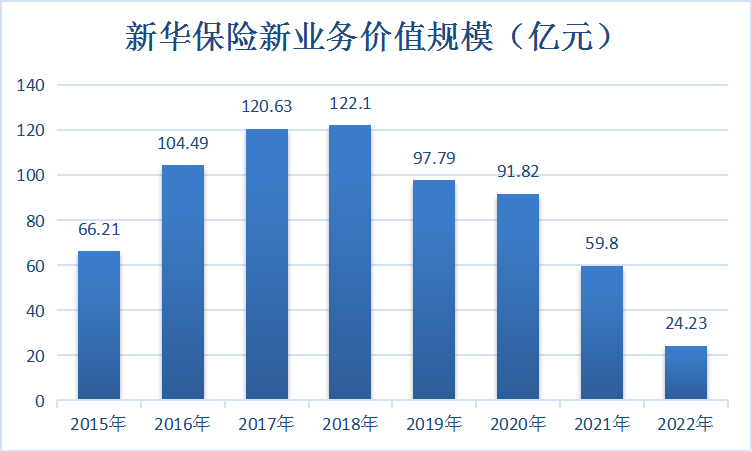 市场密切关注新华保险的人事变动,本质上也是对公司经营业绩和未来发展方向的关心。2022年,新华保险营收净利双降,多项经营指标出现下滑,尤其新业务价值在五大上市险企中降幅最高,达59.5%。