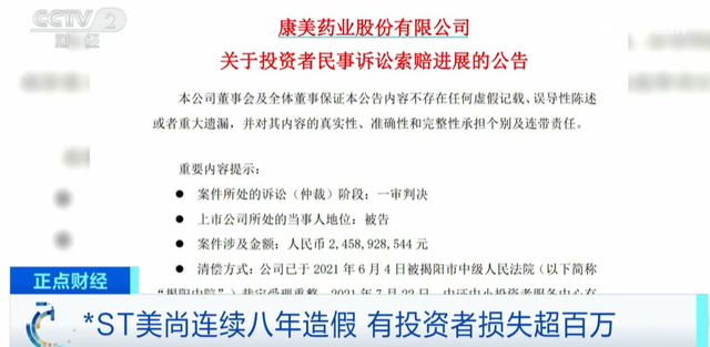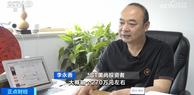 *ST美尚投资者 李永善:到目前为止,就现在的股价来说,大概赔270万元,当时很气愤,就是告公司,让它承担民事责任,让它赔偿。既然造假,就应该承担法律责任。