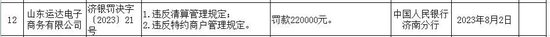 此外,另一家被罚机构运达电子因存在“违反清算管理规定;违反特约商户管理规定”的违法行为,被央行济南分行罚款22万元。