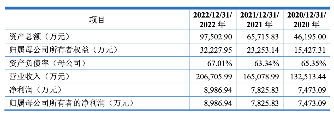 从人员数量和营收规模来看,昆仑联通在行业内属于规模较大的企业。近三年,其营收持续保持增长,营收累计超50亿元。具体来看,2020年-2022年(下称“报告期”),昆仑联通的营业收入分别为13.25亿元、16.51亿元、20.67亿元;净利润分别为7473万元、7826万元、8987万元。主营业务收入复合增长率为24.90%。