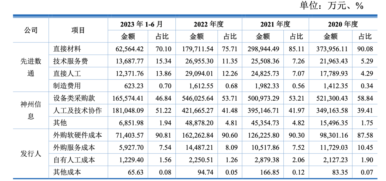 报告期内,昆仑联通的主营业务成本主要由外购软硬件、外购服务及自有人工成本构成。