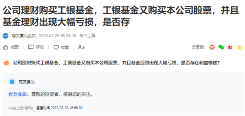 面对如此大的亏损,当时曾有投资者于交流平台表示,公司理财购买工银基金,工银基金又购买本公司股票,并且基金理财出现大幅亏损,是否存在利益输送?公司并未正面回复该问题。
