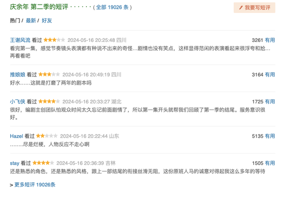 但有《庆余年1》珠玉在前,再加上苦等5年,部分观众似乎对其有所失望,认为“剧情拖沓、广告太多”。豆瓣上一水的二星、三星评论。