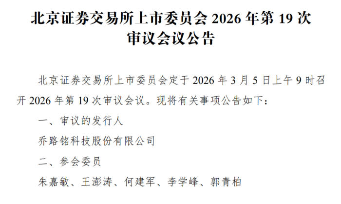 2026年3月5日,北京证券交易所上市委员会将召开审议会议,对乔路铭科技股份有限公司(以下简称“乔路铭”)的首发上市申请进行审核。作为一家专注于汽车饰件研发、生产与销售的企业,乔路铭头顶国家级专精特新“小巨人”的光环,看似前景一片光明。然而,深入剖析其财务数据、业务模式、公司治理结构以及行业环境等多方面因素,不难发现其上市之路荆棘丛生,诸多风险点如影随形,亟待解决。