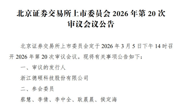 2026年3月5日,浙江德硕科技股份有限公司(以下简称“德硕科技”)即将迎来北交所上市审核的关键时刻。然而,在这看似充满希望的背后,德硕科技却隐藏着诸多问题,这些问题如同阴霾,笼罩在其上市之路之上,让人对其未来能否顺利登陆北交所充满疑虑。