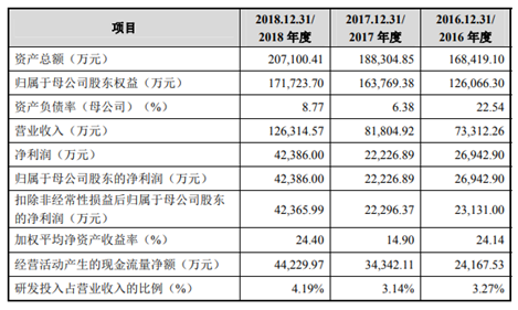 华熙生物的招募书中显示,自2016年至2018年,营业收入及净利润均实现大幅上涨。2018年度营业收入为12.63亿元,较2017年度同比上涨54%;2018年度净利润为4.24亿元,较2017年度同比上涨90%。其中2018年度较2017年度大幅增长的原因是由于战略调整及内部管理落地及新技术新产品的面世。