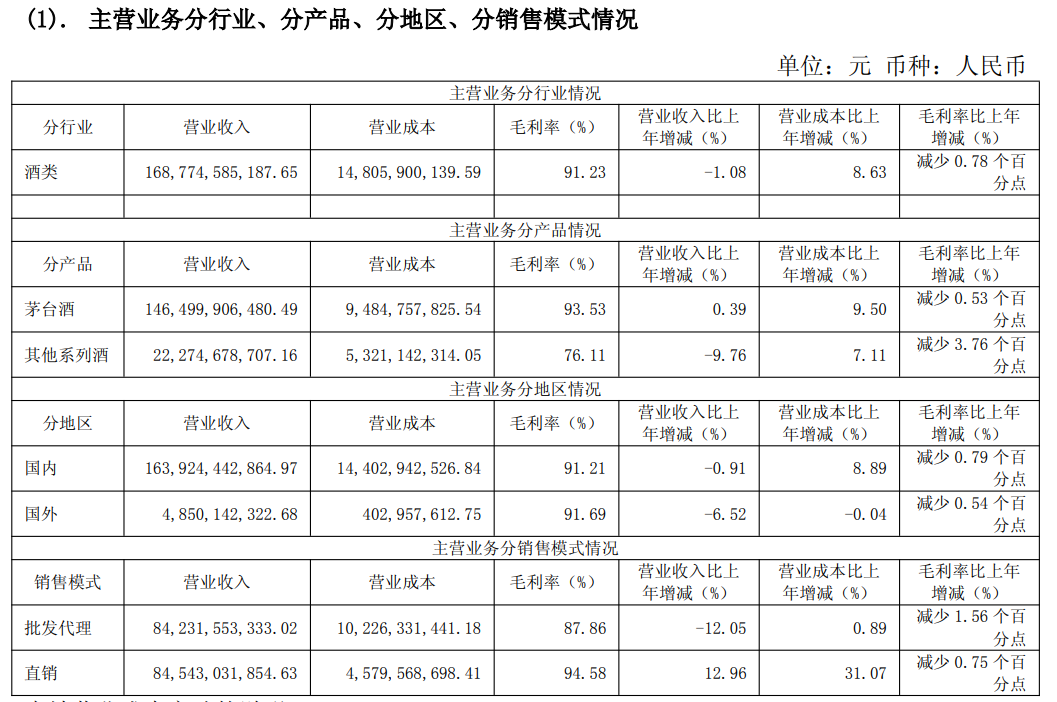 根据财报,去年茅台酒和其他系列酒的销量均正增长。