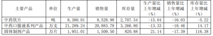 其中,中药饮片作为公司规模最大的品类,全年产量和销量同比分别下滑15.04%和16.03%,期末库存量同比下降5.22%,库存压力得到一定缓解。